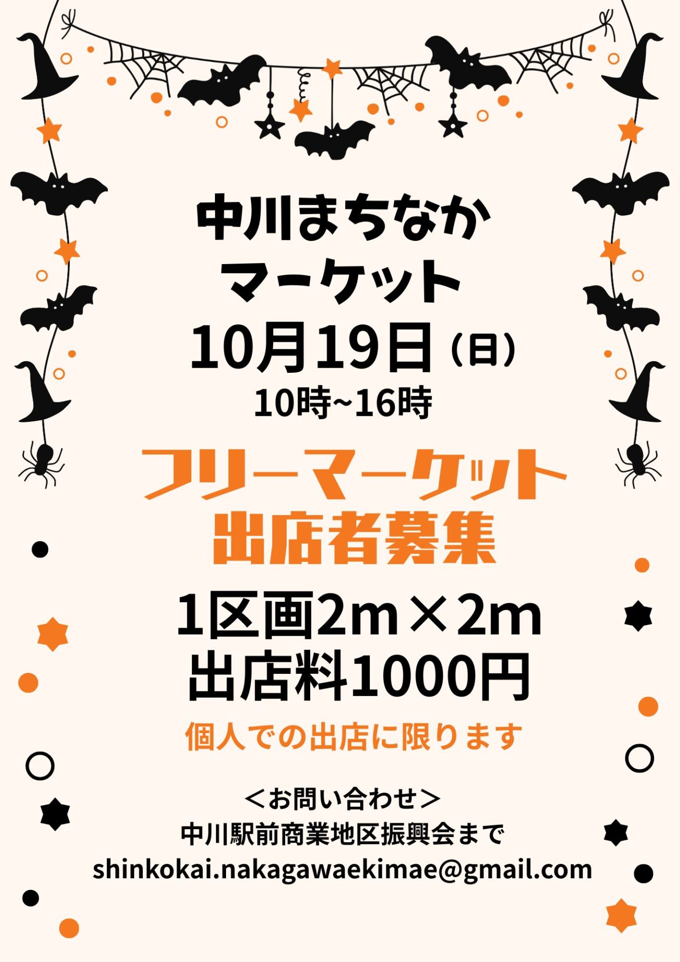 中川のまちではステージイベントやフリマ(募集中、下記参照)、楽しい模擬店がたくさん。
